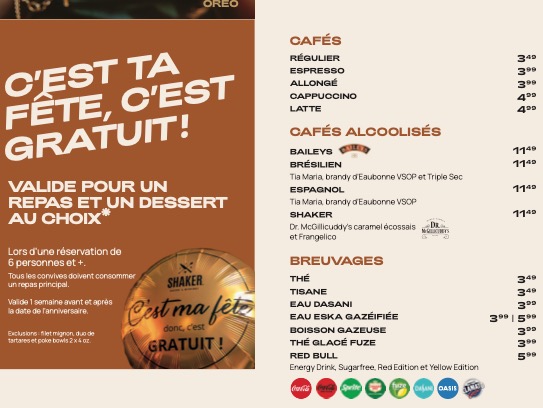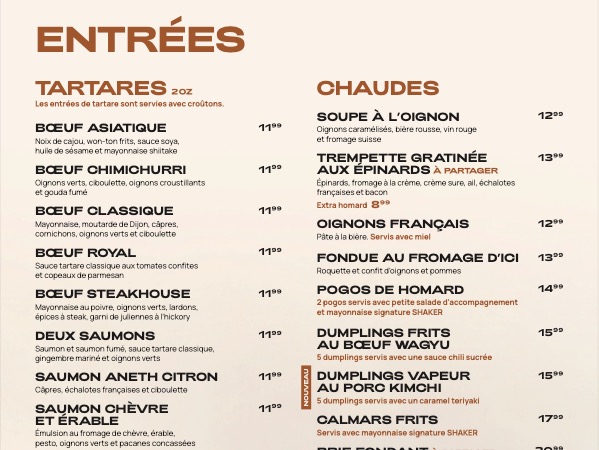 Introducing the menu at SHAKER Cuisine & Mixologie Charlesbourg promises a delightful culinary journey that marries creative cuisine with exceptional mixology. Nestled in the vibrant heart of Quebec, this establishment channels a cozy yet upscale atmosphere, perfect for casual outings or special occasions.